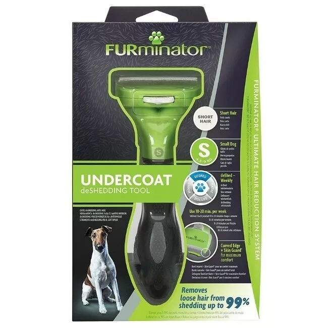 El deslanador Furminator para perro pequeño de pelo corto elimina de forma fácil y segura el pelo suelto en época de muda y reduce en un 90% la caída de pelo.
