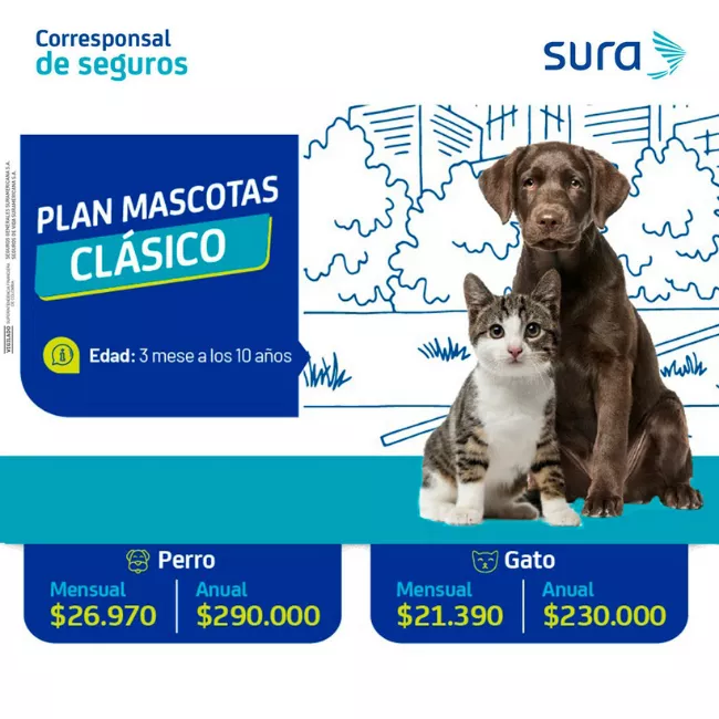 Daños a terceros: Para cubrir daños que tu mascota ocasione a otras mascotas, personas o sus bienes. Recibe hasta: $37.000.000 para perro y hasta $10.000.000 para gato.
