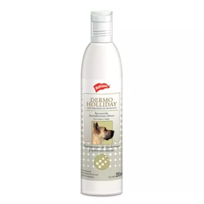 Shampoo Dermo Holliday antiséptico bactericida de amplio espectro. Combate la seborrea oleosa por su acción sebostática sobre las glándulas de secreción sebácea. Presenta un efecto rubefaciente folicular y buena actividad queratolítica. La base cosmética que vehiculiza al activo (POB) es única por sus excelentes cualidades: